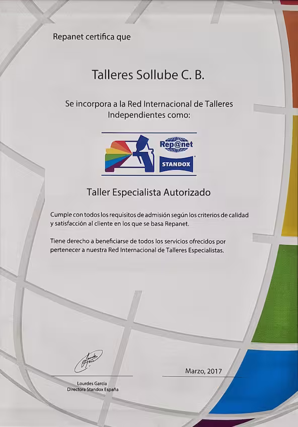 Talleres Sollube pertenece a la red internacional de talleres autorizados Repanet, de Standox.